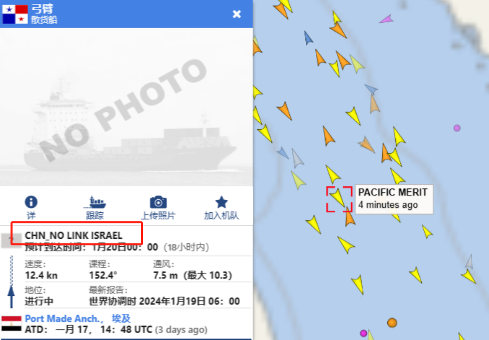只不過最近這段時間,還在紅海航運的船隊,發現了更有效的自我保護方式,那就是把目的地直接改成 “All Chinese”,表明自己的中國身份。