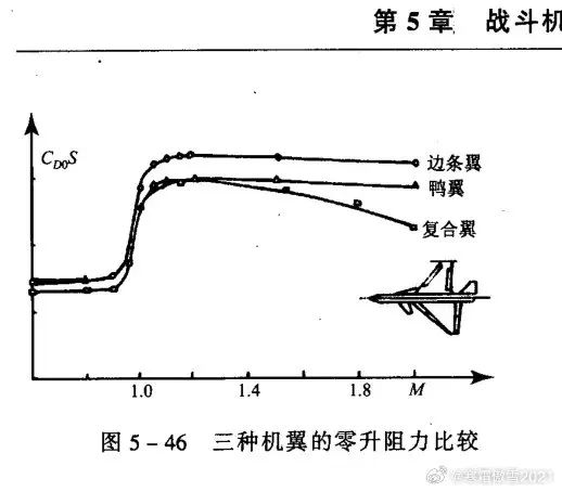 圖9可以看到常規邊條翼佈局與鴨翼佈局在剔除誘導阻力外的其他阻力總和(零升阻力方面)比典型邊條翼例如F16在亞跨音速相當,超音速則明顯低,如果是鴨翼邊條翼綜合加成則零升阻力更低,所以推力如果沒差距,陣風的小機頭➕邊條鴨翼組合零升阻力小於J10小於沒有蜂腰的颱風,可是颱風有2台四代中推就顯著扳回劣勢,颱風總推力高J104.7噸、高陣風2.7噸推力,力大磚飛你服不服?