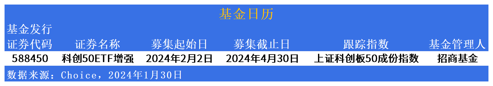 公告顯示,科創50ETF增強(588450.SH)將於2024年2月2日開始募集。