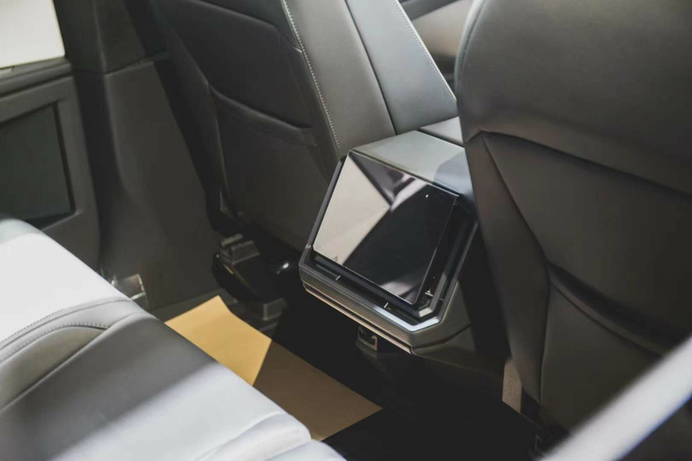 首先是方向盤,並不是普遍的圓形,而是折線組成的矩形——這也算是跟Cybertruck整體的調性吻合了,除了輪胎哪都沒有圓。車前後座中央都有一塊顯示屏,預計會跟特斯拉的智能駕駛緊密聯繫起來。