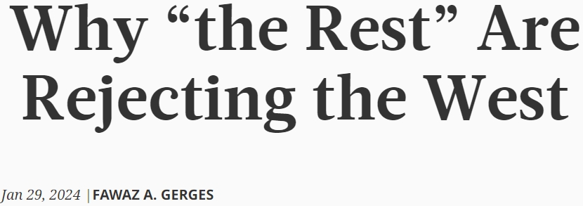 (作者是倫敦政治經濟學院國際關係學教授。本文原題“Why ‘the Rest’ Are Rejecting the West”,由報業辛迪加發佈於2024年1月29日。超鏈接為原文所有。譯者聽橋,對機器形成的初步譯文有校閲。)
