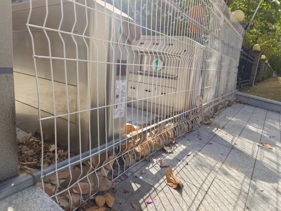 基地北門外側是一段綠道,有政府宣傳欄和石椅,石椅上有厚厚的灰塵,顯然很久沒人坐過。而西門門口有一個快遞架子,上面只有1個快遞盒。