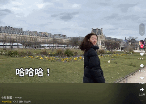 好比她最近在抖音連更旅遊vlog,全程素顏出鏡,畫風依舊鬼馬隨心。