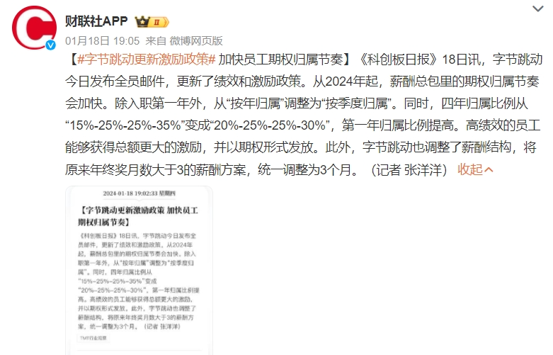 近期字節跳動在更新的績效和激勵政策中,保持薪酬年包總金額不變,將產品線薪酬由18薪調整為15薪,年終獎固定為3個月工資+期權的做法,就引發了圈內的熱議。