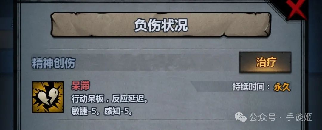 而有的debuff則是沒法整的,要麼是沒保護好傷員落下的,要麼是與生俱來的,比如初期我們的隊伍裏就有個“傻大個”,呆呆的。