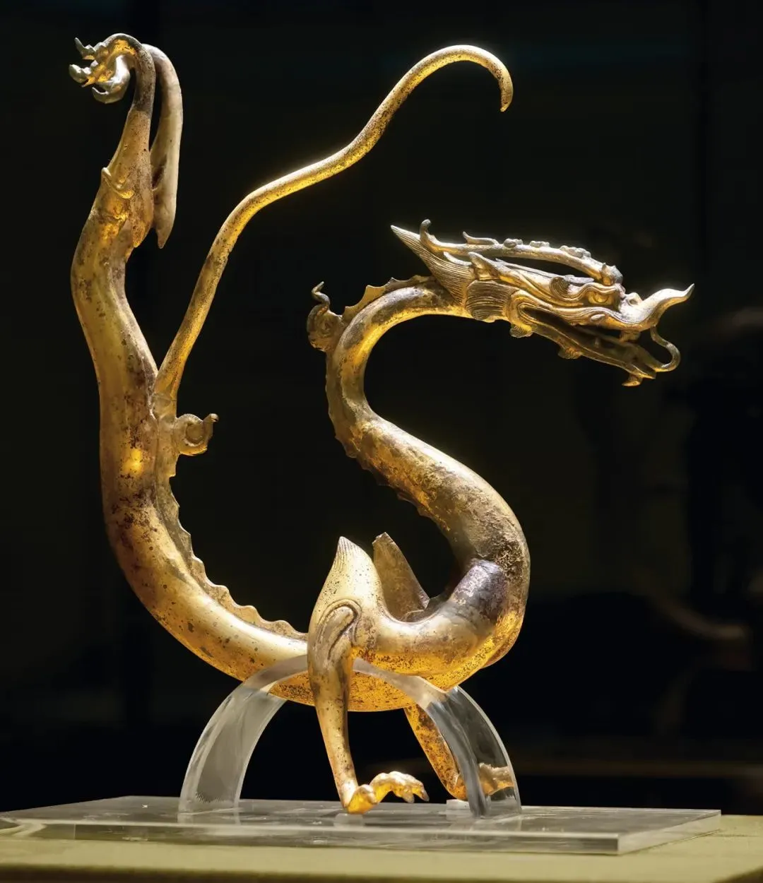 《詩經》裏寫,“龍旂陽陽,和鈴央央。” (注:以蛟龍為飾的旗子,紋彩美麗。車軾前的鈴鐺,發出響聲。)考古學家則看到了龍從遠古飛來。