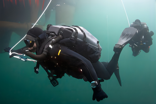 ▲海豹突擊隊員們的單兵裝備包含循環呼吸器以及微型潛水裝置,這可以保證他們在水下保持較長時間的待命狀態