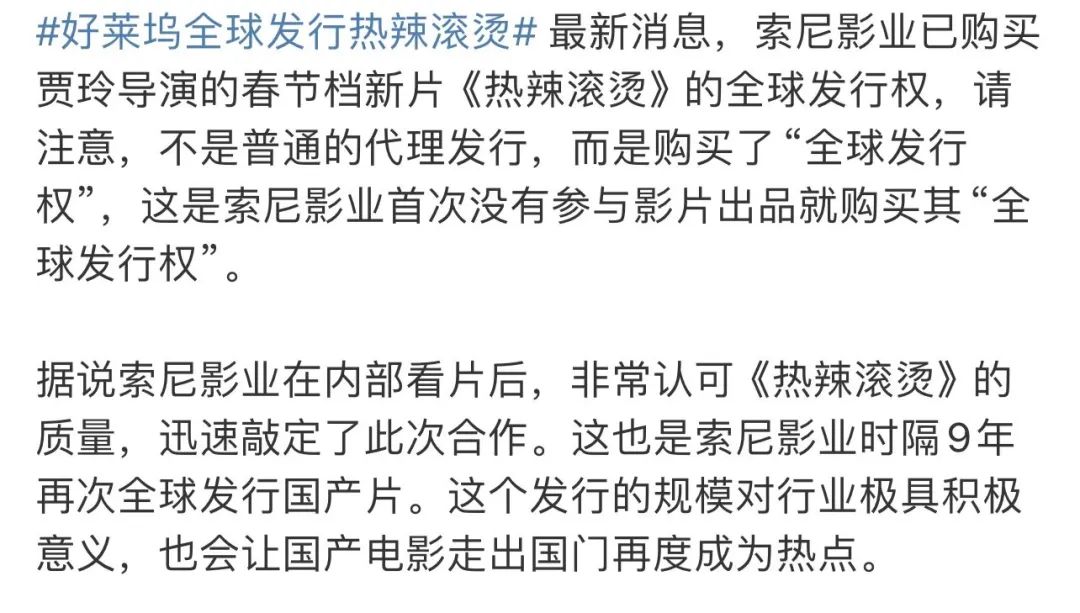 據説電影已被索尼購買版權全球發行了,誇就完事了。