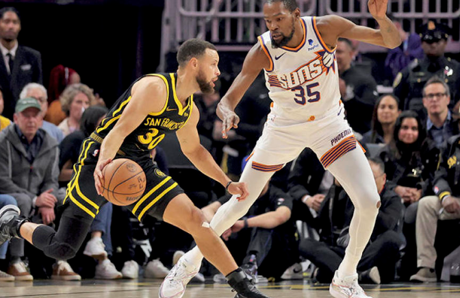 太陽的防守輪轉問題,今天庫裏的9個三分球就是明證:庫裏面對努基奇和杜蘭特的強投換防人,庫裏利用太陽掩護輪轉不力的切出投籃,也包括那個絕殺。