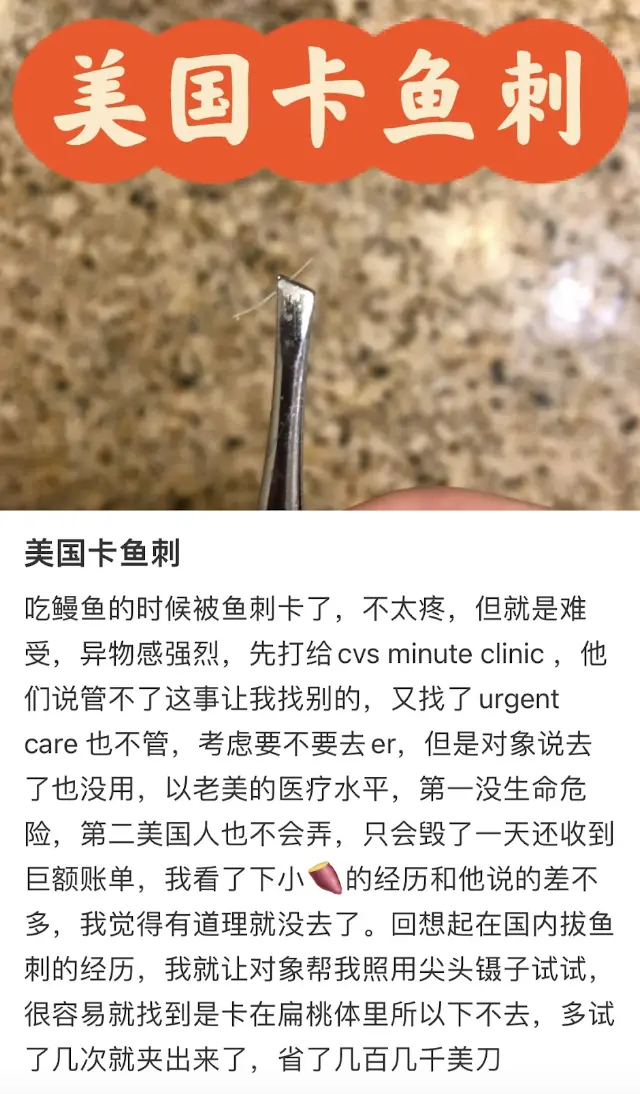 網友表示,人在海外,不少朋友都經歷過卡魚刺的痛苦。