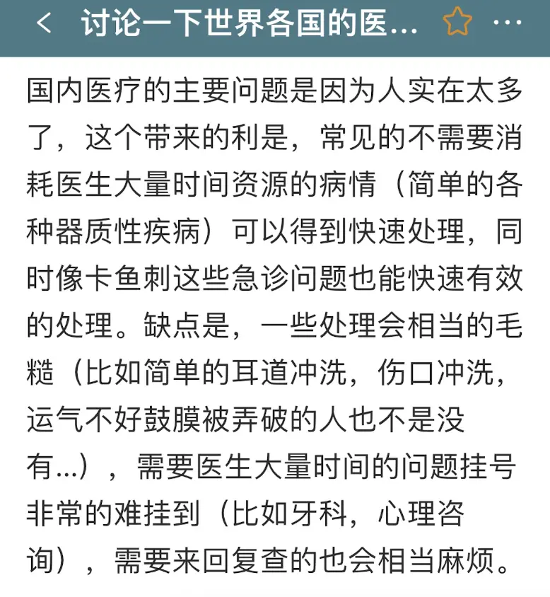 一畝三分地上有網友發過帖子:討論一下世界各國的醫療體制,其中就提到了中國拔魚刺的高效。
