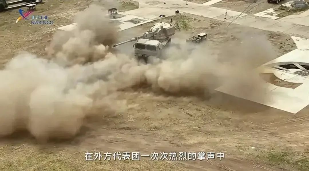 與該炮同時研製中還有使用相同炮塔的履帶式全自動無人炮塔自行加榴炮,但視頻裏沒有出現,估計也會很快面世。這樣一來,中國未來外貿型的155毫米自行火炮,將有四種主打款式,各種底盤信手拈來,任君挑選。
