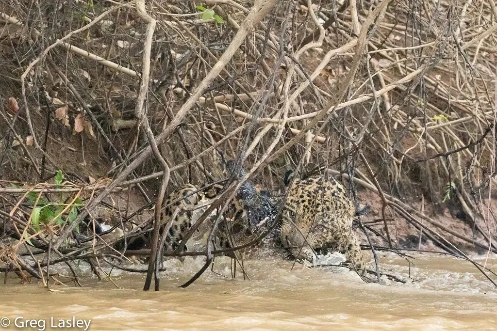 在巴西潘塔納爾濕地,攝影師Greg Lasley拍到一隻美洲豹獵殺了巴拉圭凱門鱷 圖片來源:Greg Lasley / inaturalist