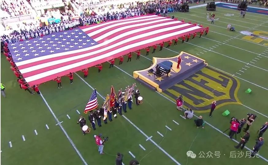 一年一度的美國文體界明星聯袂表演,響徹全場的國歌聲,覆蓋全場的星條旗,高喊“USA”的藝人,激動落淚的球員,震耳欲聾的音樂聲,舉國激昂!