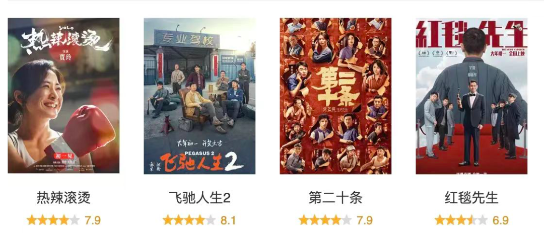 其實,今年春節檔可謂神仙打架,電影豆瓣一開分,就是8分左右,《飛馳人生2》開分8.2,《第二十條》開分8.0,而7.8分的《熱辣滾燙》也貼近8分線。