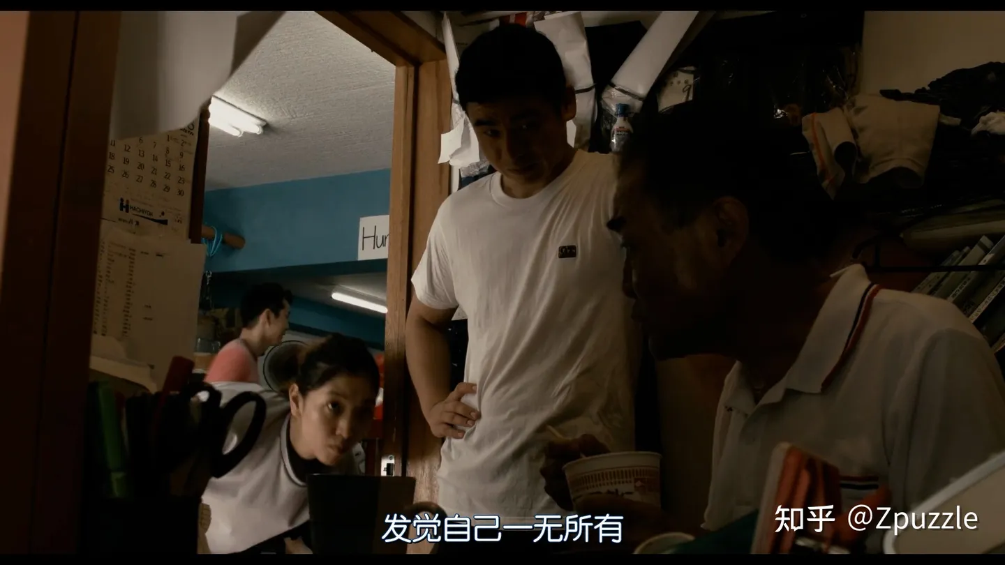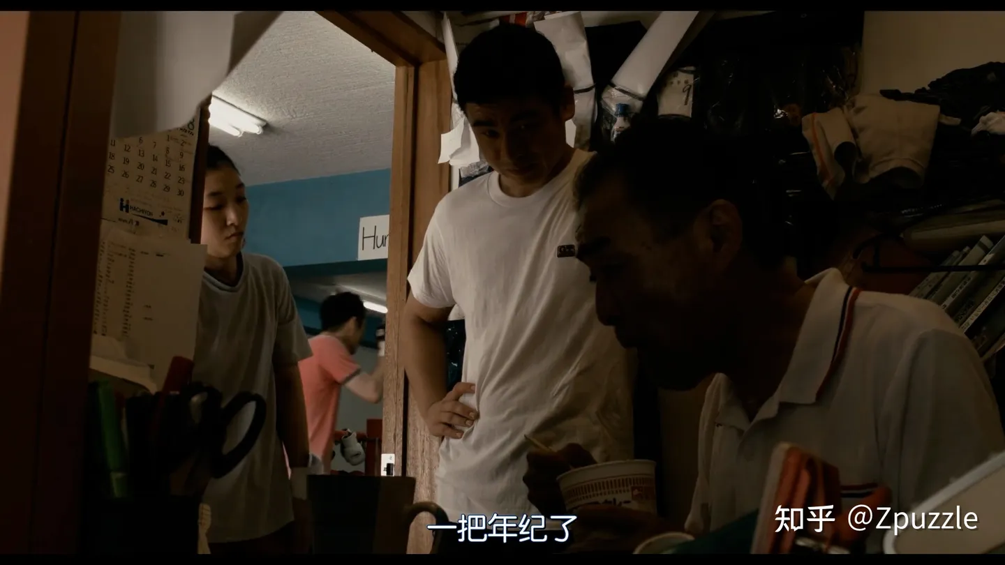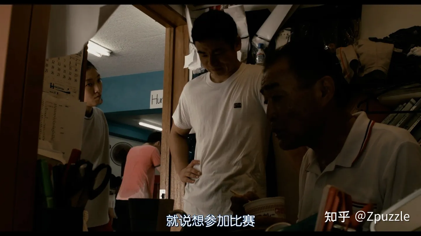 另外,在人物的妝造上,我覺得《百元之戀》做得很好的一個地方,是在片中加入了大量女主角穿着便利店工裝練習拳擊的內容。我之前並未覺得這個內容有什麼特殊含義,但是現在對比來看,那我覺得導演的這個設計就非常好了。因為穿着工裝在便利店練習拳擊,可以作為一種隱喻,即女主角把拳擊練習作為生活的一部分,拳擊與生活的融合是促成女主角生活心態轉變的核心。在這個基礎上,她的心態變化也更自然。