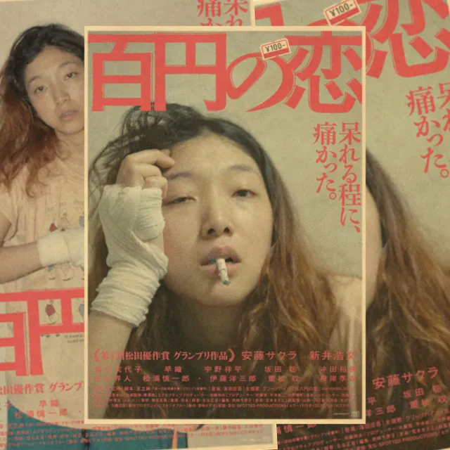 之所以説《百元之戀》這兩個情節設計的好,是因為這兩個情節本身其實是一種對“靠運動贏得人生”的這種勵志雞湯的解構,也是對本片主題的一種強調。雖然,也可以説《百元之戀》是一個勵志電影,但是《百元之戀》的勵志不是那種熱血勵志。這一點,也可以從《百元之戀》的海報上看出來: