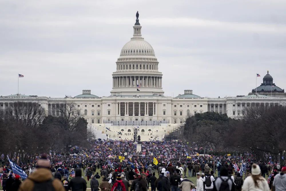 這是2021年1月6日在美國華盛頓拍攝的特朗普的支持者在國會前參加示威遊行的資料照片。新華社記者 劉傑 攝
