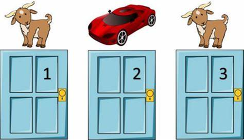 以三門問題為例:三扇關閉的門後面分別藏着汽車和兩隻羊,參賽者需要選中藏有汽車的門才能贏獎;如果參賽者先選定了一扇門但未打開,這時已知答案的主持人打開了剩下兩扇門中有羊的一扇,那麼請問參賽者要不要選擇另一扇門呢?