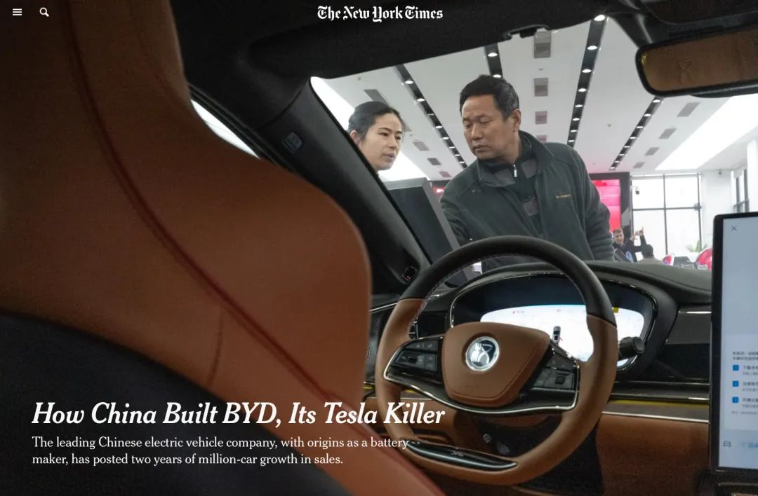《紐約時報》12日文章講述比亞迪(BYD)的崛起之路:從當年行業裏的“laughingstock(笑柄)”成長為如今的“Tesla killer(特斯拉殺手)”。從標題、導語到正文,從行文架構到具體用詞,文章都很有看點,推薦各位閲讀。