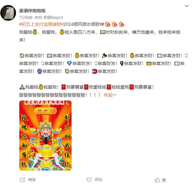 初五整一堆虛頭巴腦的接財賀詞,都不如一句“支付寶到賬xx元”。