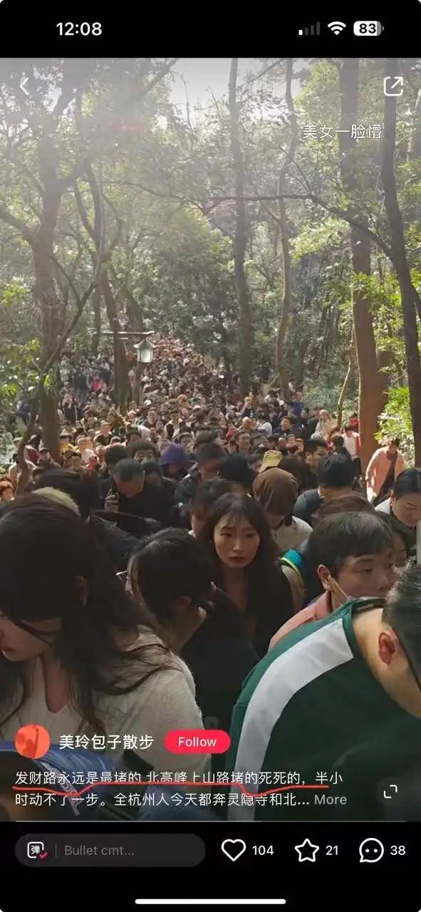 每年初五,都是大家接財神的日子,各大寺廟門口永遠是擠滿了人從眾,靈隱寺凌晨六點還沒開門就擠滿了搶頭炷香的遊客,短短一段求財路上,簡直比北上廣的早高峯還要堵。