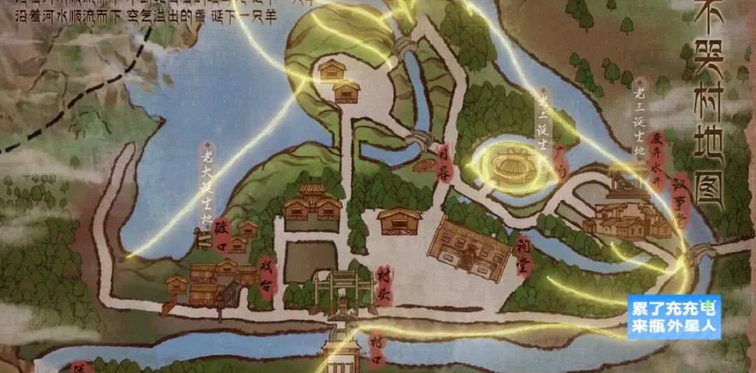 偵探團調查陷入僵局,直到他們找到了一份建村之時繪製的舊地圖,原來村子的輪廓就是一頭羊的形狀,而“空氣中溢出的香味”正對應着羊鼻子,這也解釋了真正的第三個誕生地為什麼會在水井。