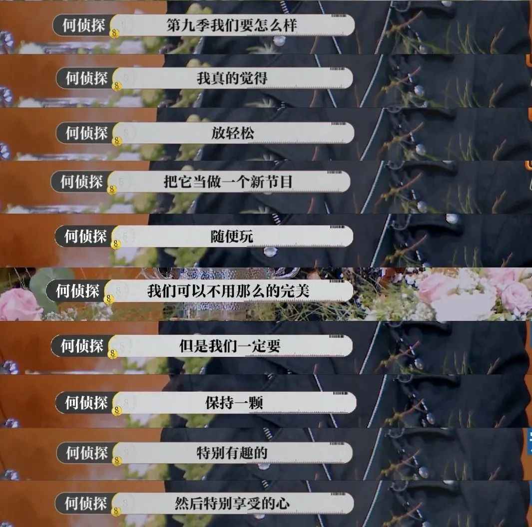 我想跟所有觀眾和台前幕後所有的工作人員解個綁,第九季我們要怎麼樣,我真的覺得,放輕鬆,把它當做一個新節目,隨便玩,我們可以不用那麼的完美,但是我們一定要保持一顆特別有趣的,特別享受的心。”