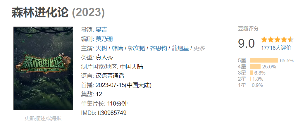 第8季的先導片,因為高呼聲,直接做成了新的遊戲綜藝《森林進化論》,邁入去年9分國綜行列。