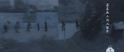 陰暗的天空透不出一絲陽光,俯視鏡頭下圓形的圍屋,籠罩着壓抑的氛圍。