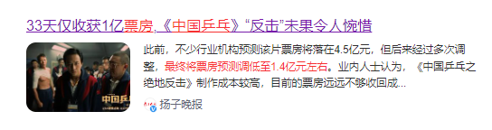 最後,改檔能不能達到預期效果還是個未知數。拿去年的《中國乒乓》舉例,同樣也是選擇上映一個星期,票房近億的時候撤檔。一個月後重新上映,《中國乒乓》的關注依舊沒有上去,僅僅拿下了3000多萬票房,最終票房定格在1.2億。究其原因真不用分析太多,“一鼓作氣,再而衰,三而竭”這句古語就是最好的註解。