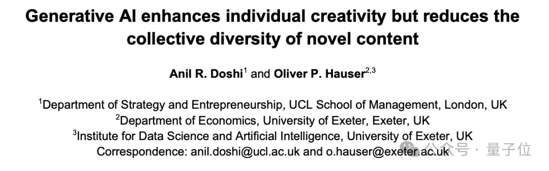 創意寫作領域亦見相似現象,倫敦大學學院、埃克塞特大學研究人員的一項實驗表明,創意作家技能差距縮小,GPT-4提供的五個創意靈感**“有效地平衡了不同創造力水平作家的創造力評分”**。
