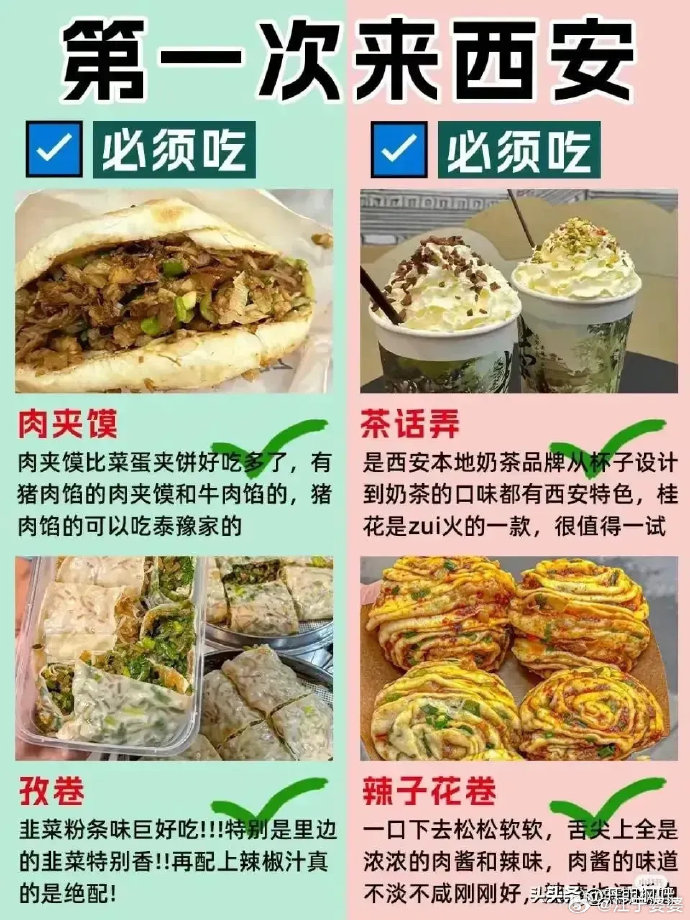 您管圖裏這叫肉夾饃???大家切記,正宗肉夾饃,必須只有臘汁豬肉+白吉饃,不能出現第三樣東西。肉夾饃有幾個變種,一個是牛羊肉版本,這個版本偏幹,口感不佳。還有各類菜夾饃,也是很好吃的。還有更地道的涼皮夾饃!碳水炸彈但是無敵好吃!茶話弄現在爛大街了,到處都是,口味就那樣,任何地方任何品牌的奶茶店都差不多的東西。另外兩個是“遊客專享”。