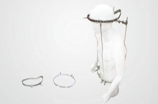 它和國際上普遍使用的Halo重力牽引有所不同。後者通過數量不等的固定釘,將金屬環固定在患者頭顱上,通過上方的牽引繩輕輕拉伸、拉直脊椎。它可以幫助矯正部分脊柱側彎,提高脊髓耐受程度,同時改善心肺功能、吞嚥情況。飯吃得好,營養狀態也會提升。這些都有助於提高隨後脊柱矯形手術的安全性與矯治率。
