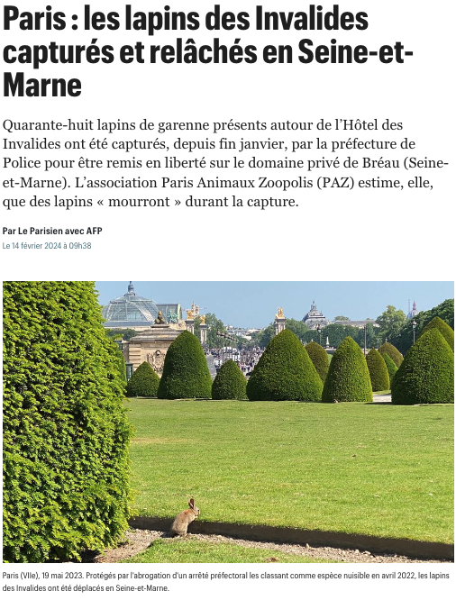 於是,巴黎警察總署終於成功了,並在法新社在 2 月 13 日星期二宣佈,榮軍院的兔子正在向塞納-馬恩省移動。