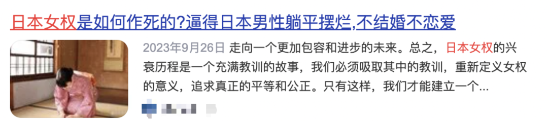 但在男大V的描述中,是第二輪女權運動的興盛導致日本女性“昏了頭”,人均拜金女,對日本男性提出高要求,這樣的作死行為才逼得日本男性集體躺平。