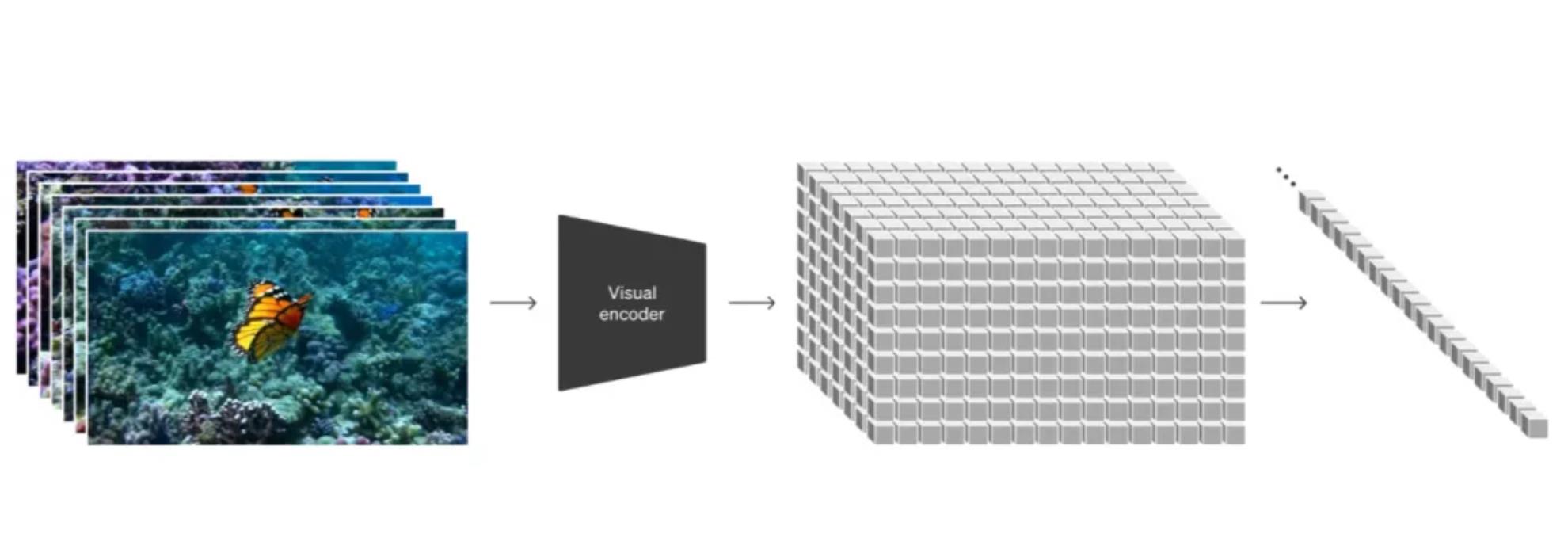 視覺數據維度降低:Sora訓練了一個網絡,該網絡將原始視頻輸入並輸出在時間和空間上壓縮的潛在表示。同時,還訓練了一個解碼器模型,將生成的潛在表示映射回像素空間,從而生成視頻。