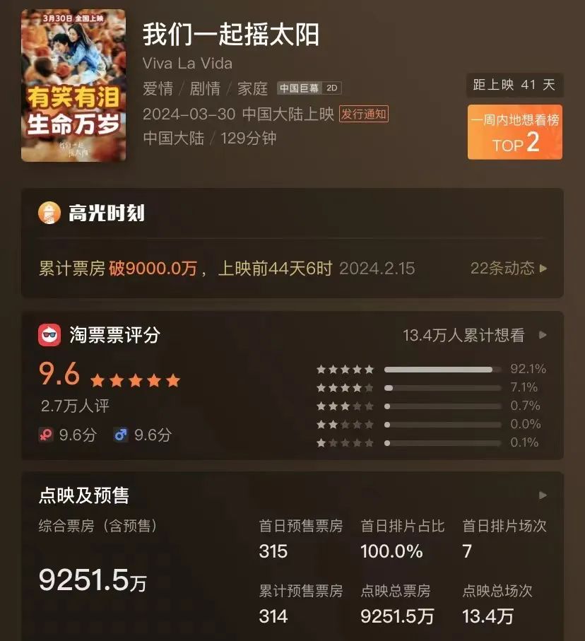 春節檔從來都是一個大賭盤,但這屆龍年春節檔尤其殘酷,這在很大程度上揭示出這個檔期的贏家特性:要有春節檔特定明星羣,要有話題度。在春節檔這個拖家帶口觀影的熱鬧場合裏,《紅毯先生》與《搖太陽》的“社交貨幣”含量幾乎是最低的,更直白的話是這兩部電影激不起大眾的討論度。