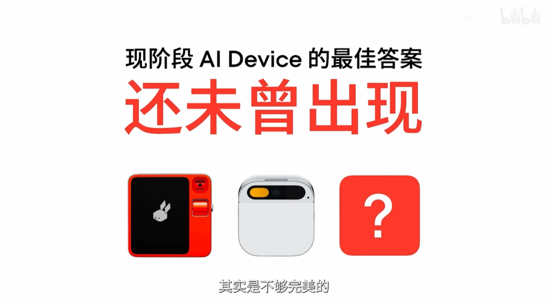 就在託尼準備洗耳恭聽,沈總到底打算怎麼**“ All in AI ”**的時候,他掏出了 **“ AI Pin ”**和 “ Rabbit R1 ” 兩款 AI 硬件產品。。。