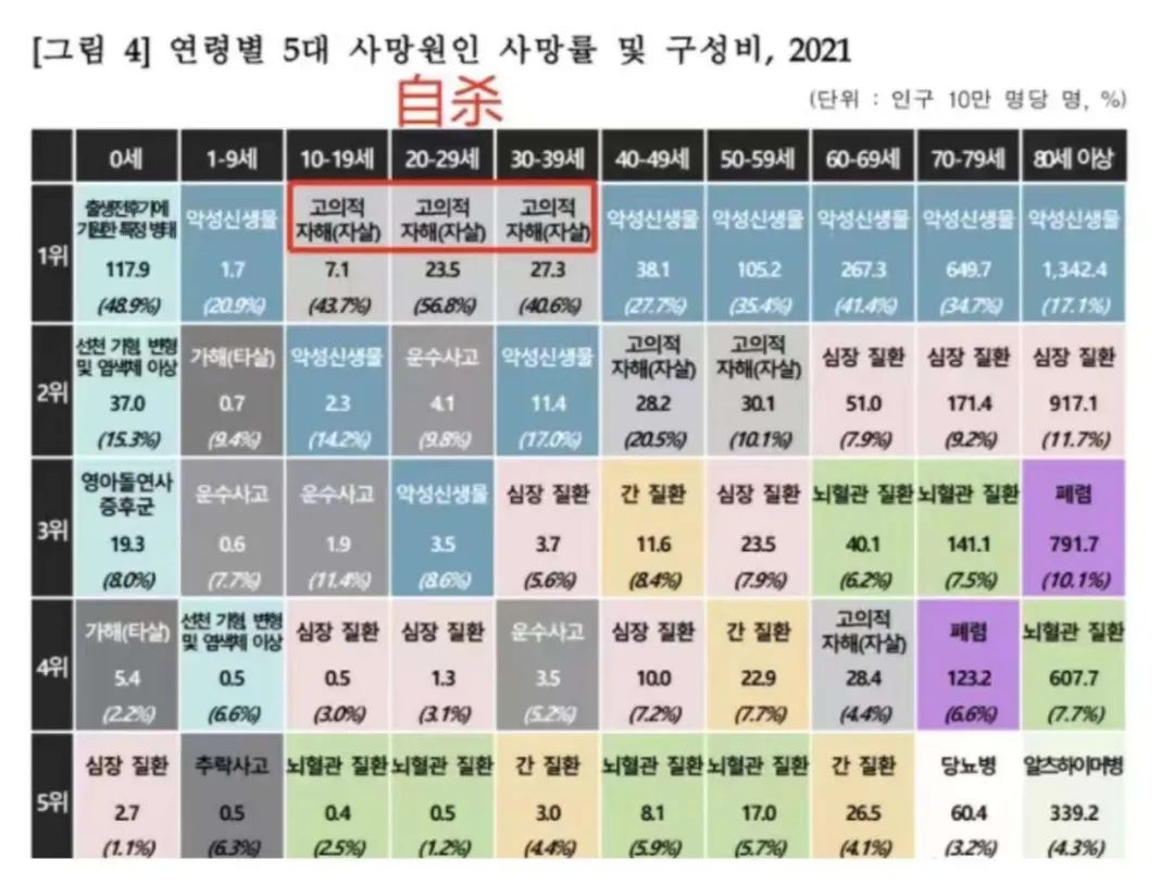 據2022年9月底韓國統計廳公佈的數據來看,韓國平均每天36.6人死於自殺,每40分鐘就有一人自殺。