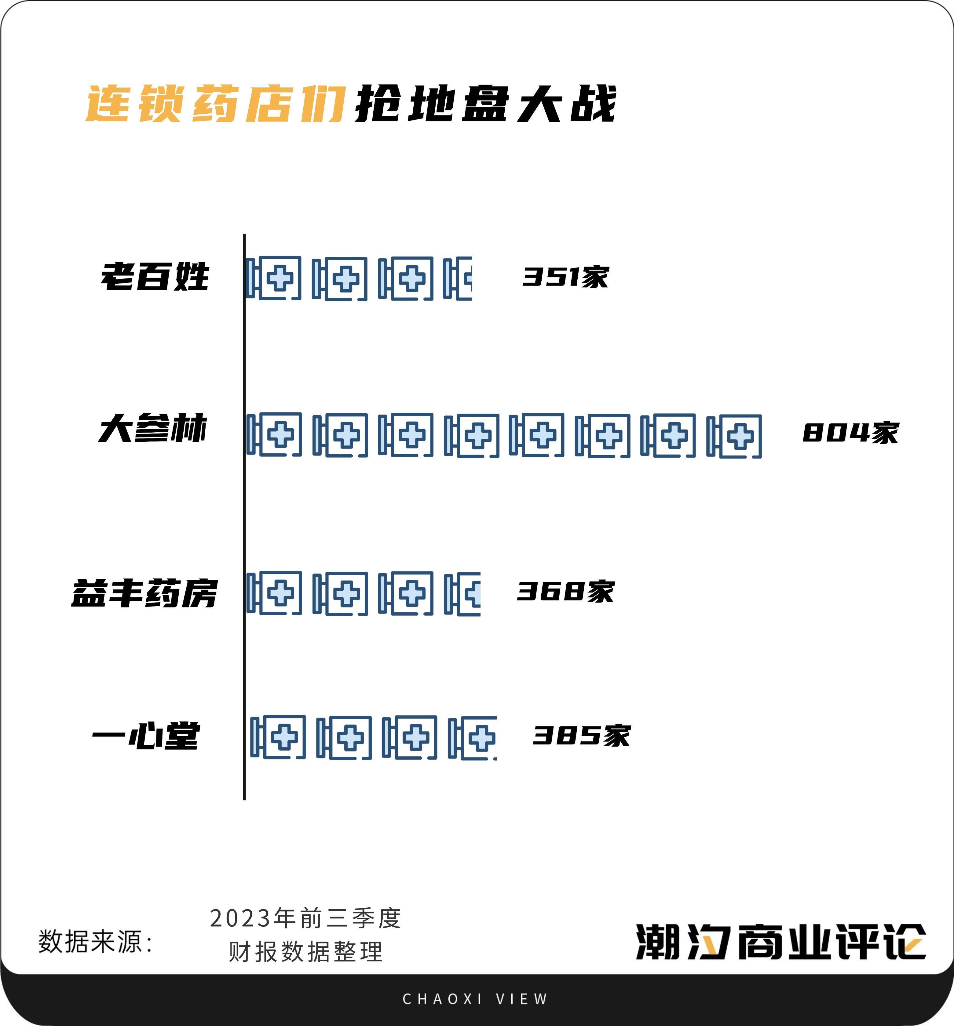 持續不斷增長的規模,給連鎖藥店們帶來更多希望,搶地盤大戰持續上演。數據顯示,2023年前三季度,老百姓共完成8起收購,以7.26億元,收購藥店351家。同期,大參林發生同業併購13起,涉及藥店804家。益豐藥房開展9起行業併購,收購368家門店。一心堂在2023年全年發起15起行業併購,公司投入現金4.65億元,共收購藥店385家,在2023年末尾,一心堂還發布系列公告稱,擬收購187家藥店。老百姓也曾表示,2024年將保持門店穩步擴張,計劃開店3500家。