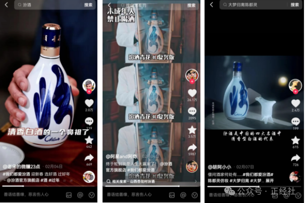 同時,袁清茂也給出了提升汾酒市場競爭力的有效方法論——掌握科學經營能力,釋放品質勢能、品牌勢能、文化勢能。#我們都愛汾酒 抖音挑戰賽正是這三大勢能集中釋放的有效落子:擁抱互聯網,讓更多網友參與、品嚐、見證汾酒品質,汾酒用清香正宗為廣大網友年夜飯添一杯品質美酒,釋放其品質勢能;在春節熱點與消費者雙向奔赴,共賀新年,汾酒鼓勵大家加入#我們都愛汾酒 話題探討,而與消費者產生深刻的情感關聯,增強品牌曝光量和美譽度,釋放品牌勢能;真正走近消費者,汾酒用大家喜聞樂見的方式,與消費者共創當今時代的汾酒文化,全面釋放文化勢能。