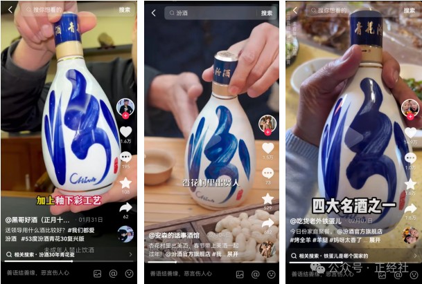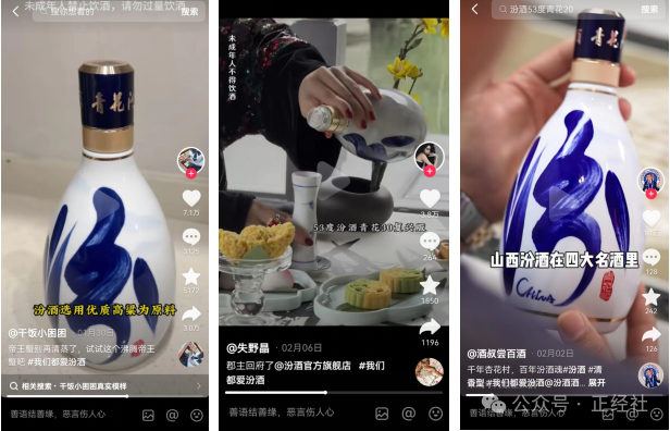 @吃貨老外鐵蛋兒@酒叔嘗白酒@胡阿小小@阿星and阿奇@沐酥酥@黑哥好酒@安森的話事酒館@老宋的微醺23點@失野晶@乾飯小困困等橫跨酒水、美食、搞笑、劇情領域的博主也都積極參與#我們都愛汾酒 抖音挑戰賽,用創意創新的視頻展現對汾酒的青睞。