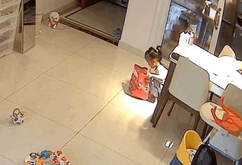 還有一個兩歲的小女孩,走路都還不太穩,就要貼心地幫媽媽裝飯盒。