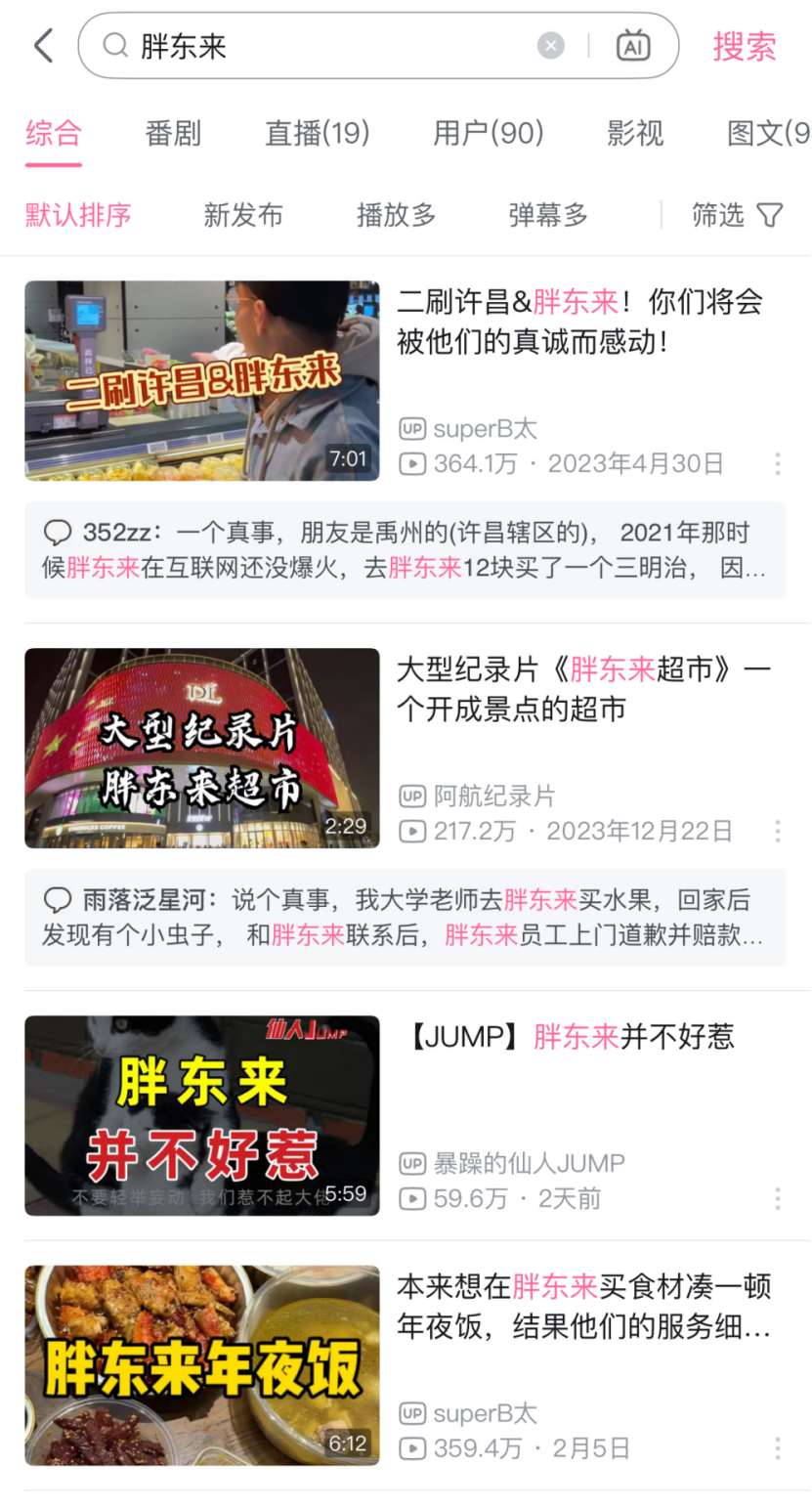 伯虎財經發現,在B站搜索“胖東來”,其相關內容有34頁,其中播放量超百萬的視頻有55個。甚至,胖東來一家超市,卻成了一個“旅遊景點”。