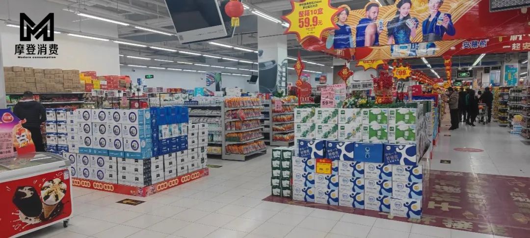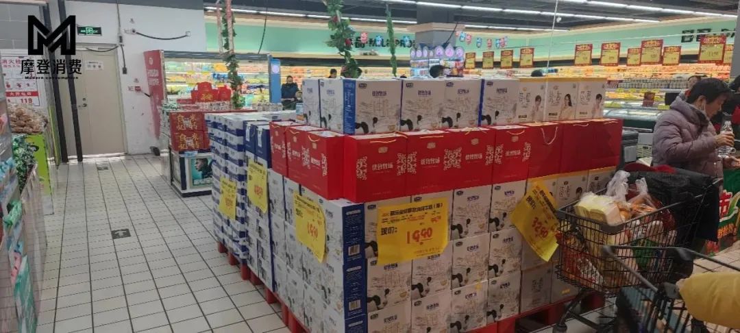 在河北廊坊固安縣的臨街小店和超市賣場的牛奶區域,各大品牌們各顯本事,玩創意、低價,花式搶佔着線下營銷的黃金地段。