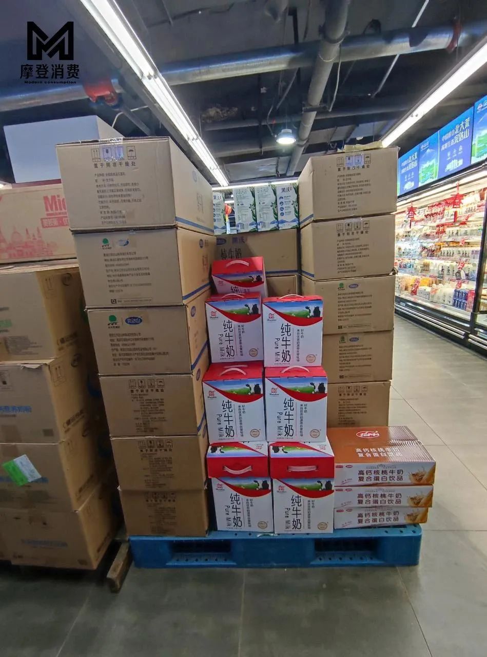 而「摩登消費」在哈爾濱線下商超走訪時,發現完達山佔據着這裏貨架上80%的位置,其產品多且雜。隨機詢問正在挑選牛奶產品的消費者,對方也直言,“我們一般都是喝完達山。”