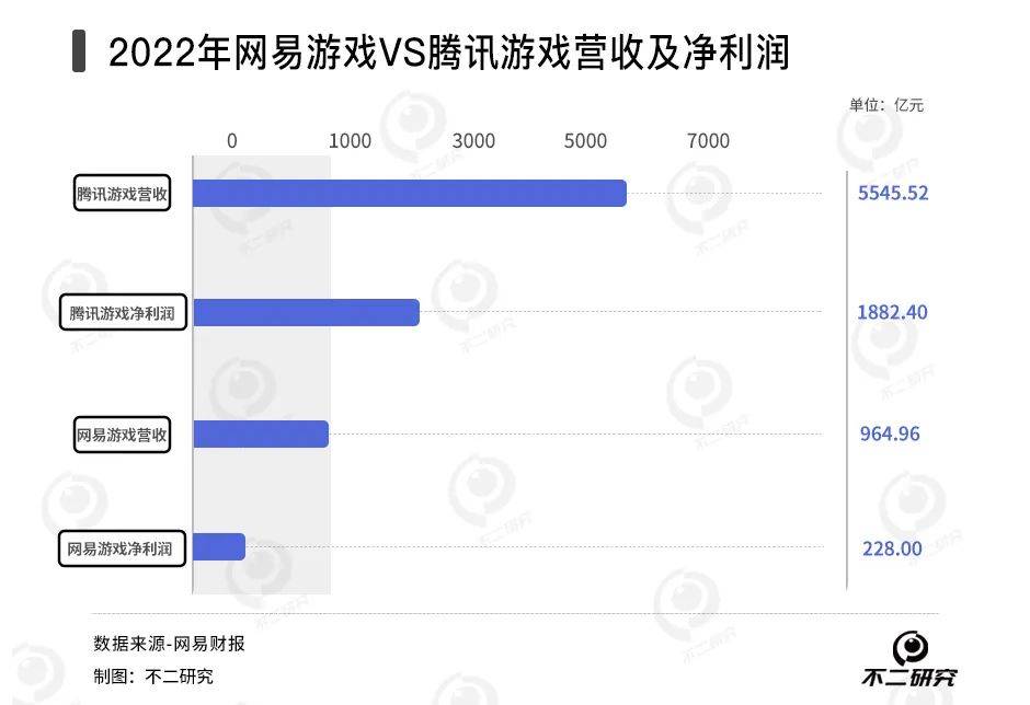 若拉長時間線,網易遊戲2022年的淨利潤為228億,同比降低6%;騰訊遊戲的淨利潤1882.4億元,同比下降16%。