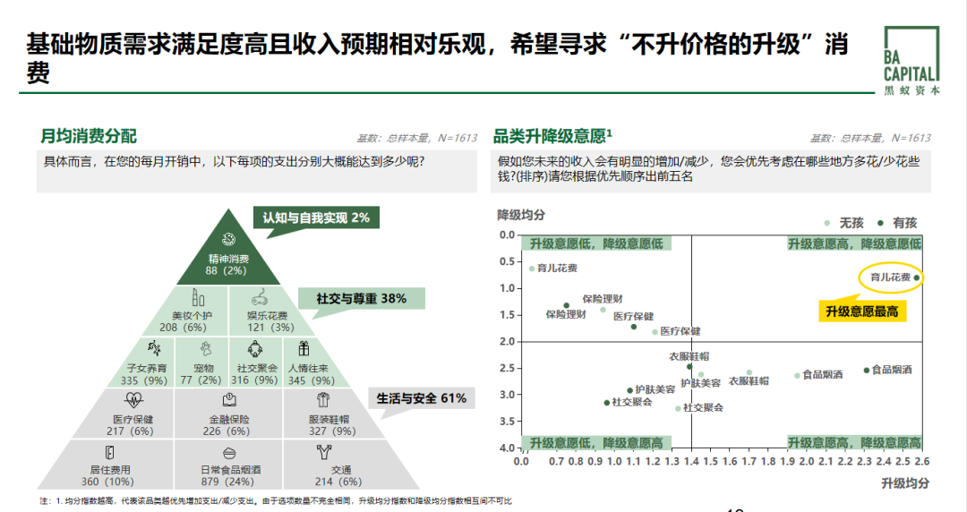 我們發現生活與安全相關的基礎消費在縣域消費者的花銷中佔61%左右,他們對品牌和好的消費有概念,但背後每個品類的升級邏輯上還是有優先順序。