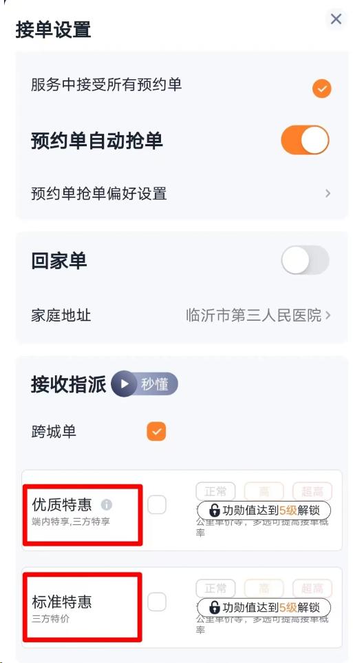 最近,有網約車司機反映,T3平台的特惠訂單發生了一些變化,接單設置中的跨城單出現了“優質特惠”和“標準特惠”兩個選項,並顯示功勳值達到5級才能解鎖。